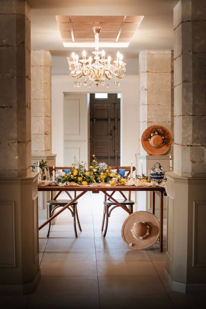 Chaque espace de votre réception est pensé et décoré dans une harmonie parfaite : choix du mobilier, sélection de la vaisselle, mise en place des compositions florales, éclairage et ambiance générale. Cette formule vous garantit une décoration sur mesure, adaptée à votre thème et à vos envies.