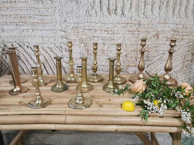 Optez pour l’authenticité de ces bougeoirs en laiton pour apporter des points lumineux de différentes hauteurs à vos tables et autres jolis coins à scénographier.