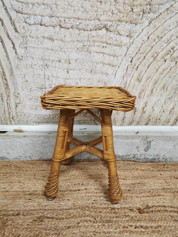 Tabouret d’appoint tout en rotin authentique, qui saura donner une tonalité naturel et tendance. Vous pourrez y disposer une belle jarre par exemple dans une scénographie de votre évènement.