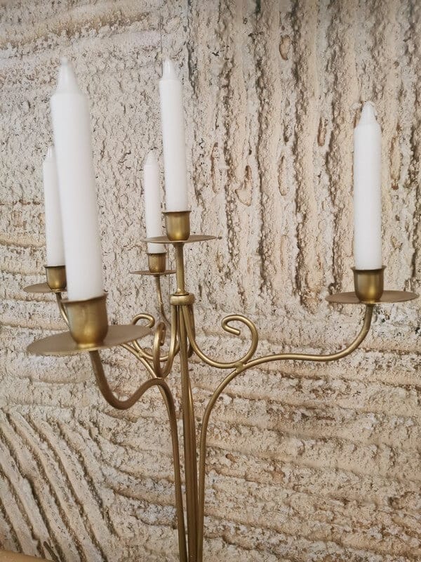 Coup de cœur pour ce chandelier en laiton à 5 branches à la jolie prestance et aux jolies formes pour une ambiance bohemian romance parfaite.