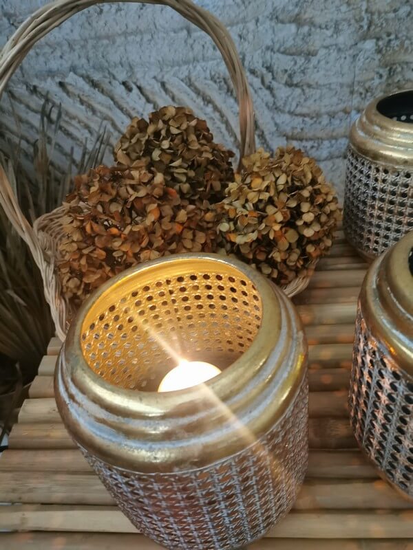 Des lanternes en métal doré pour orner votre allée de cérémonie ou en centre de table.