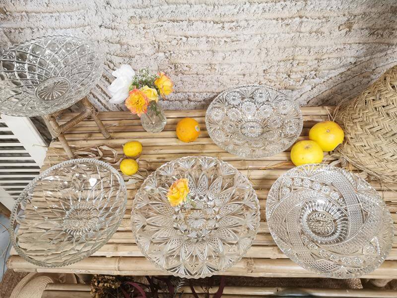 Pour donner un caractère luxueux et élégant à votre cocktail, placez vos petits fours, fruits, etc. dans ces magnifiques grands plats en cristal aux formes uniques et travaillées !