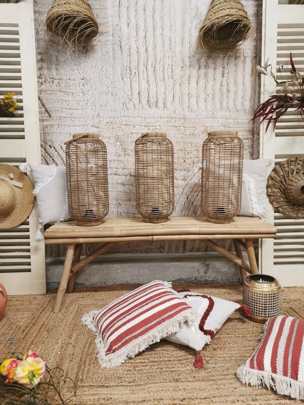 Jolie lanterne bohème en rotin pour créer une décoration d’ambiance lumineuse dans votre scénographie ou encore pour former une allée de cérémonie. A vous de choisir !