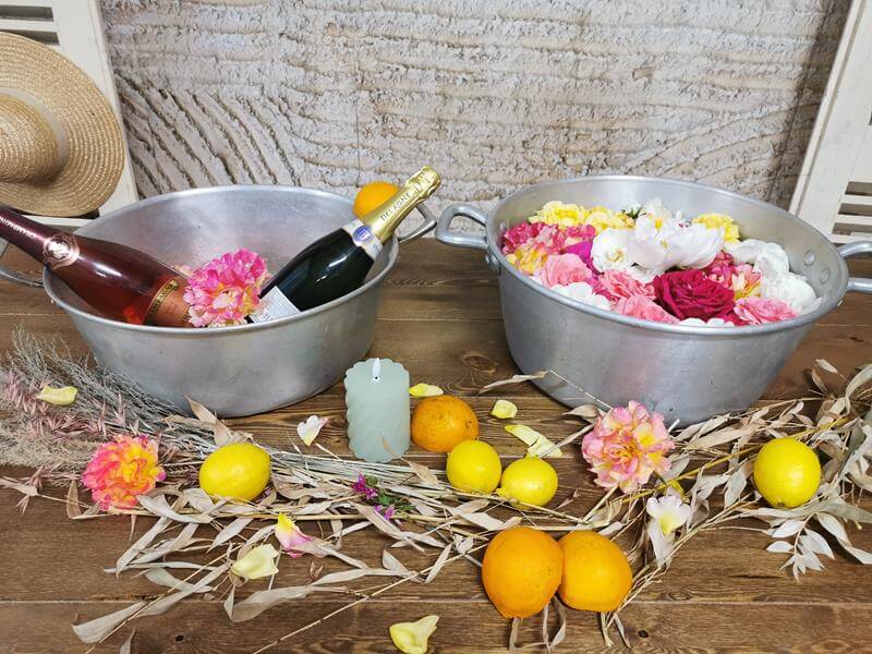 Osez le charme d’une bassine en zinc ancienne ! Décorez votre candy bar, votre cocktail ou votre photobooth avec cette jardinière en zinc givré. A décorer de fleurs, de bougies flottantes ou à garnir de gourmandises !