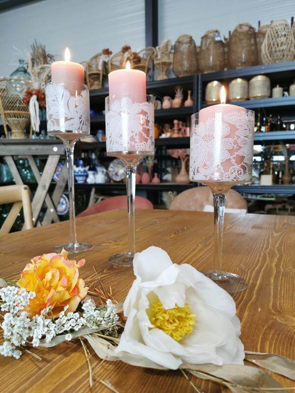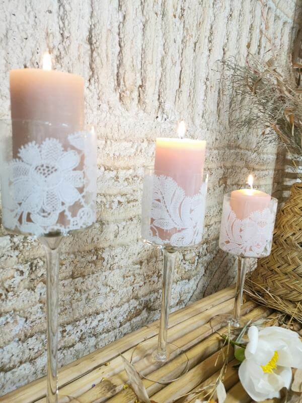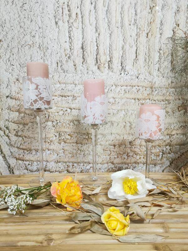 Vous voulez de la hauteur, de l’originalité, de l’élégance pure et légère ,craquez pour ces grands photophores à pieds qui accueilleront et mettront de la hauteur à vos bougies à la perfection !