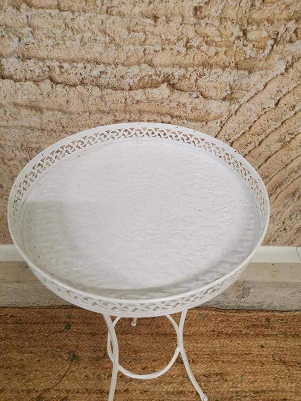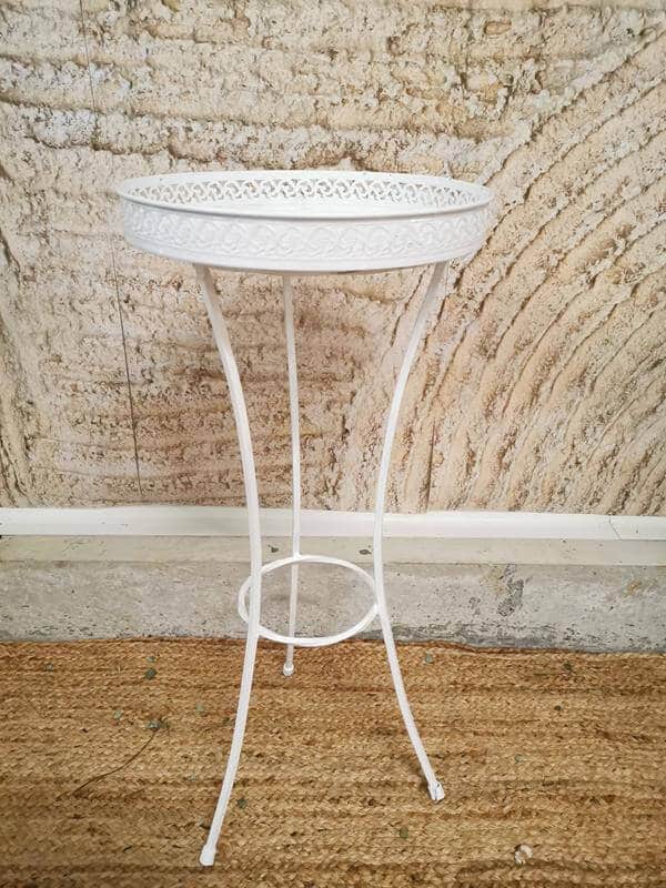 Pour mettre en hauteur et en valeur une composition florale optez pour cet élégant guéridon en fer forgé blanc.