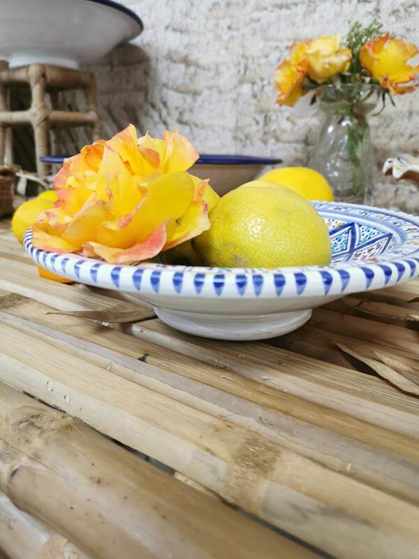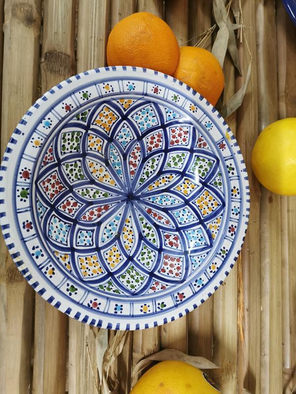Craquez pour Karima ce grand plat en faïence marqué par ces couleurs et son dessin la rosace symbole de la fleur de vie !