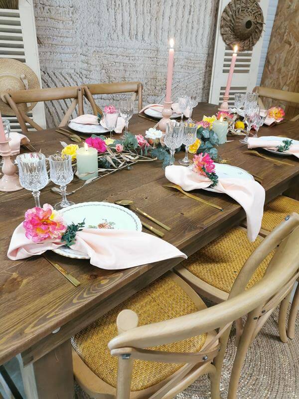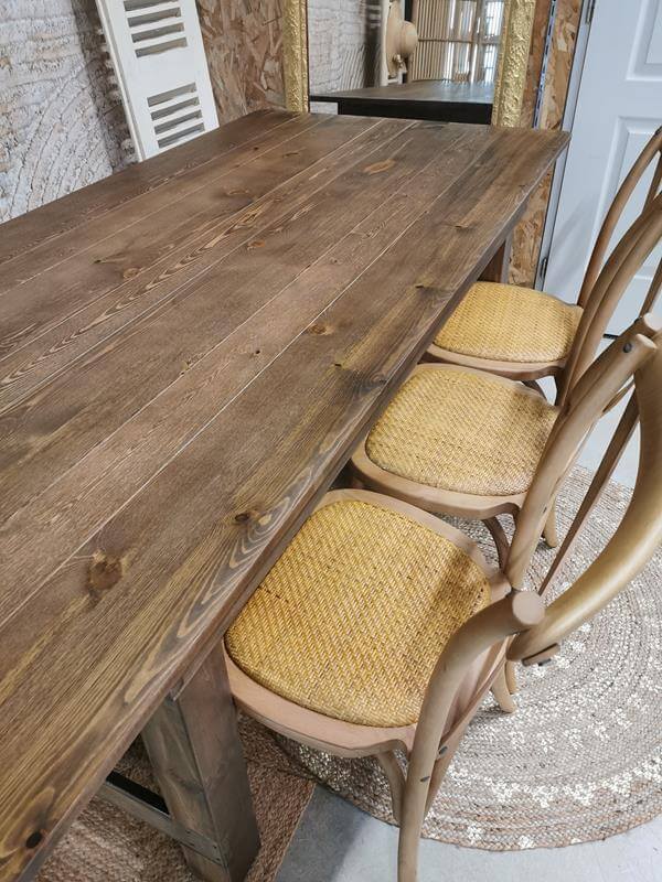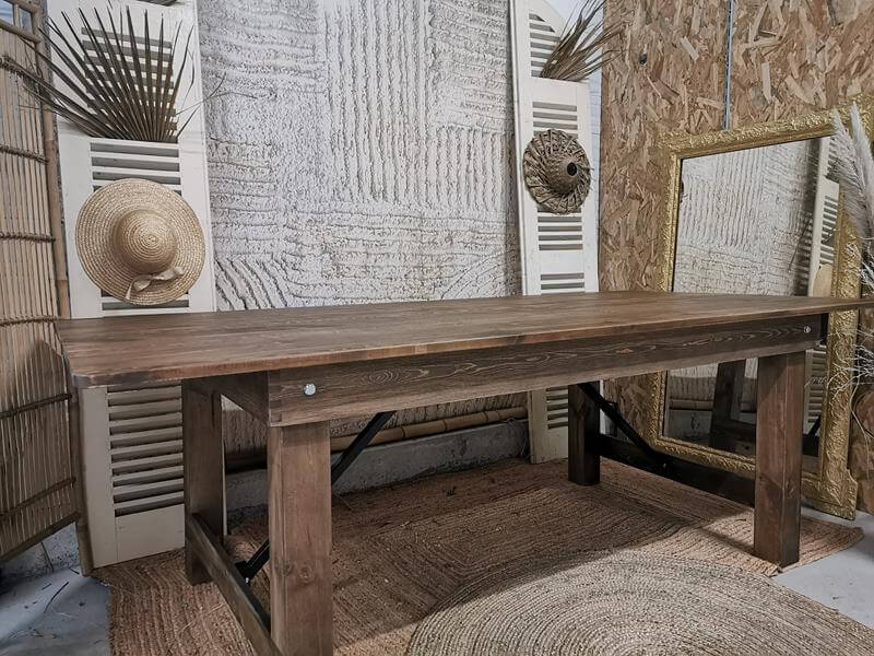 A la recherche d’une façon d’ajouter une touche de charme champêtre à vos évènements ? Louisa la table en bois au style champêtre sera parfaite pour créer une ambiance vintage, rustique et chaleureuse. Idéale également pour vos évènements en plein air, les réceptions de jardin ou les fêtes à thème rustique, Louisa peut accueillir confortablement 8 à 10 convives.