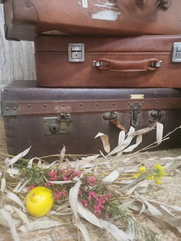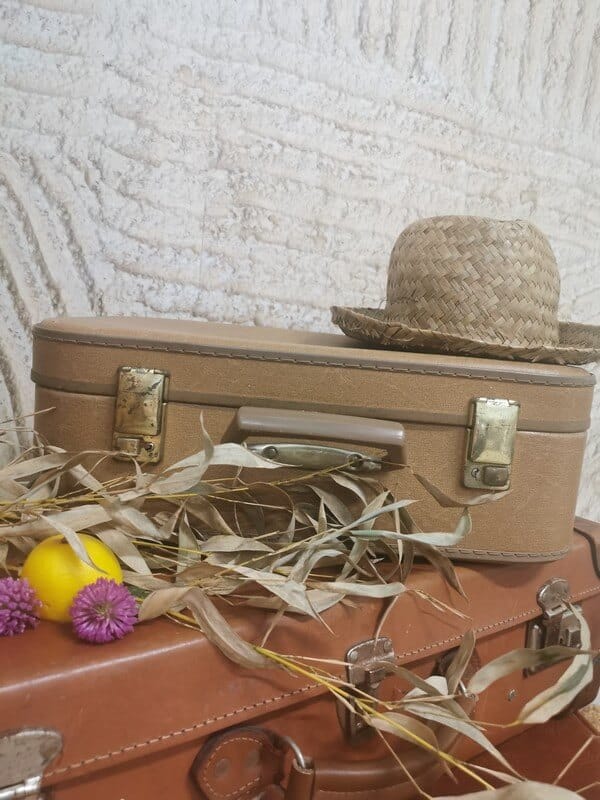 Empilement de véritables anciennes valises pour votre espace urne, photobooth ou tout autre joli décor!
