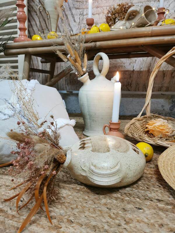 Magnifiques jarres en poterie, idéales pour d’originales compositions florales dans une ambiance bohème quelle soit bucolique ,romance ou en encore méditerranéenne.