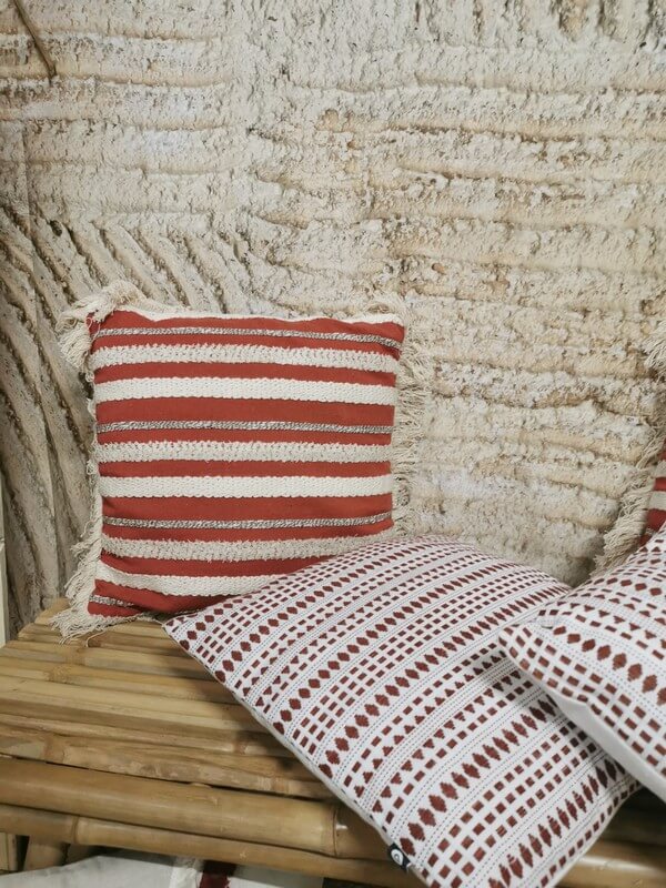 Coussin terracotta pour apporter une teinte chaleureuse si vous optez pour une ambiance terre cuite à l’italienne par exemple.